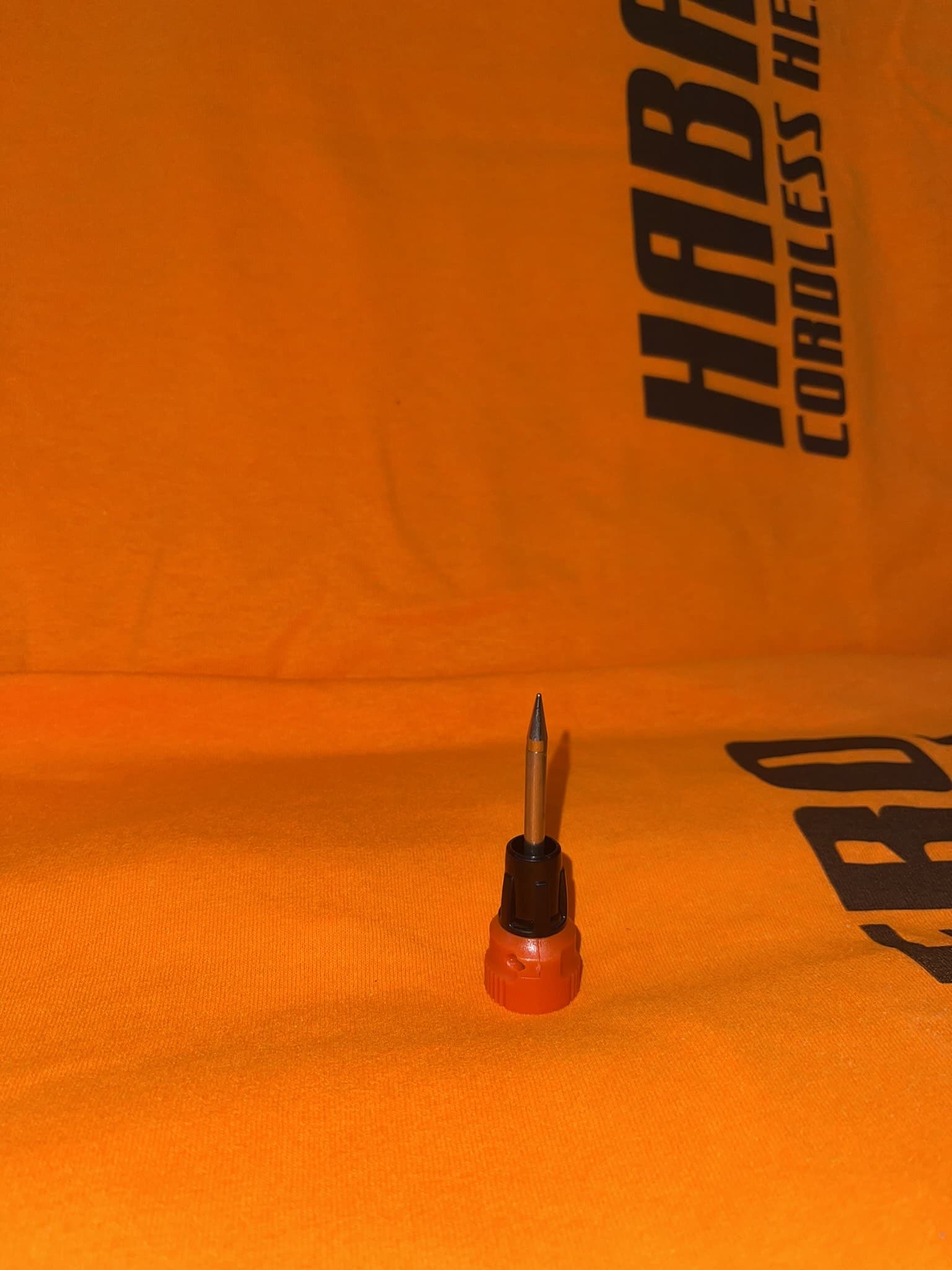 Fine point tip or the HABANERO HDT-FINE is designed for more detailed soldering applications. The HDT-FINE can do circuit board level soldering, solder wires up to 16 gauge and solder wires onto LED strips. It can do all of this quickly because the 50 watt tip can reach 700 degrees celsius or 1292 degrees fahrenheit in just about 8 seconds. Waiting for soldering irons to heat up is a thing of the past with the Habanero Diablo. This tip is quick to temperature but also quick to cool down. The combination of this and the quick change capabilities of the HABANERO TOOLS means you can go from one task to another without having to wait for the tips to cool down before changing. Textured grip so you don't slip off when changing tips.