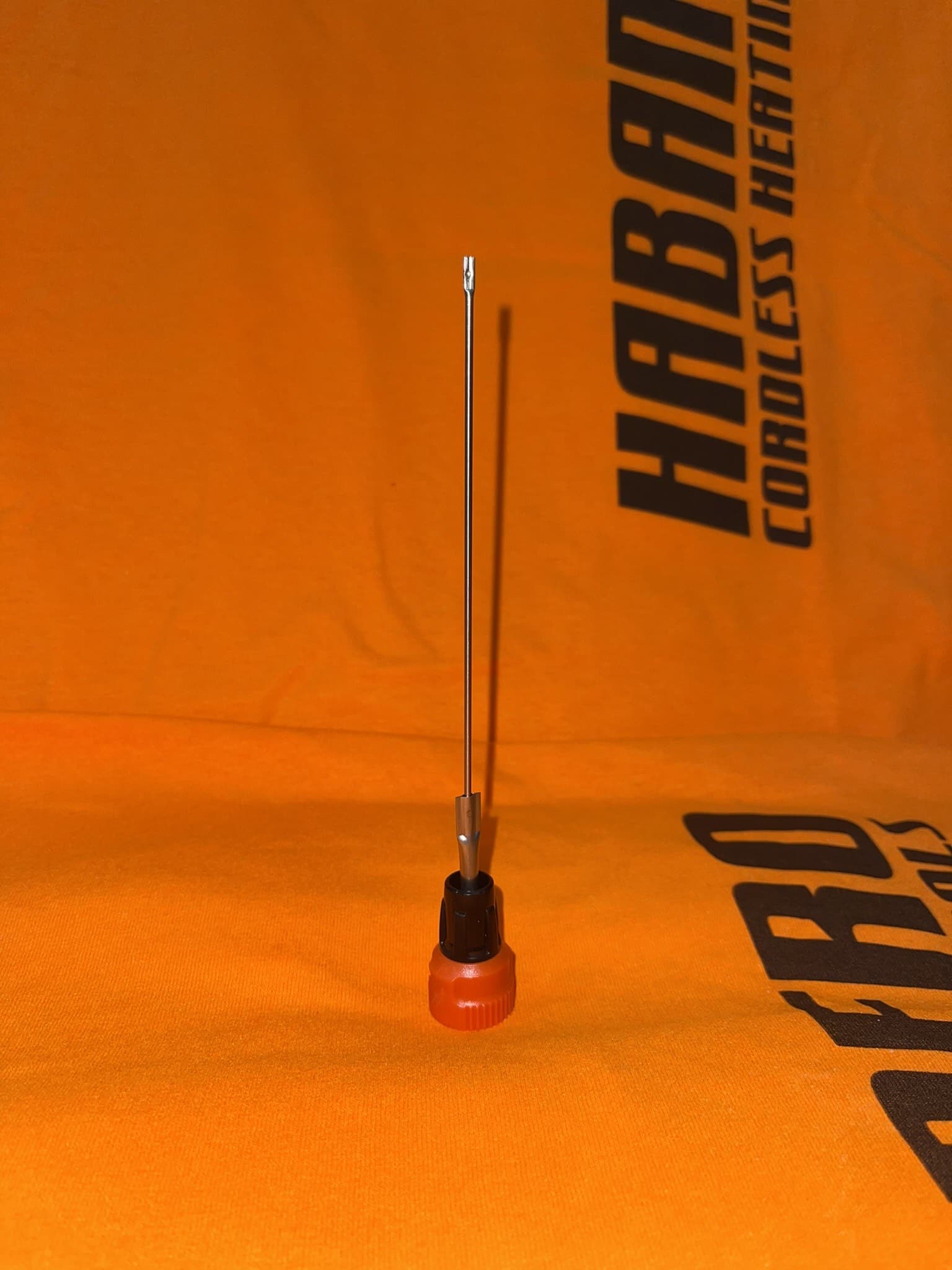 This tip is just under 5" long and just over 1 mm width tip; it will slice cleanly without loss of material. It has many other uses, just use your imagination. This tip HABANERO TOOLS has our quick twist and lock changing method of changing tips with the same textured grip all of our tips have. Compatible with all DIABLO tools. ( HSD1, HSD2 and HPRD)